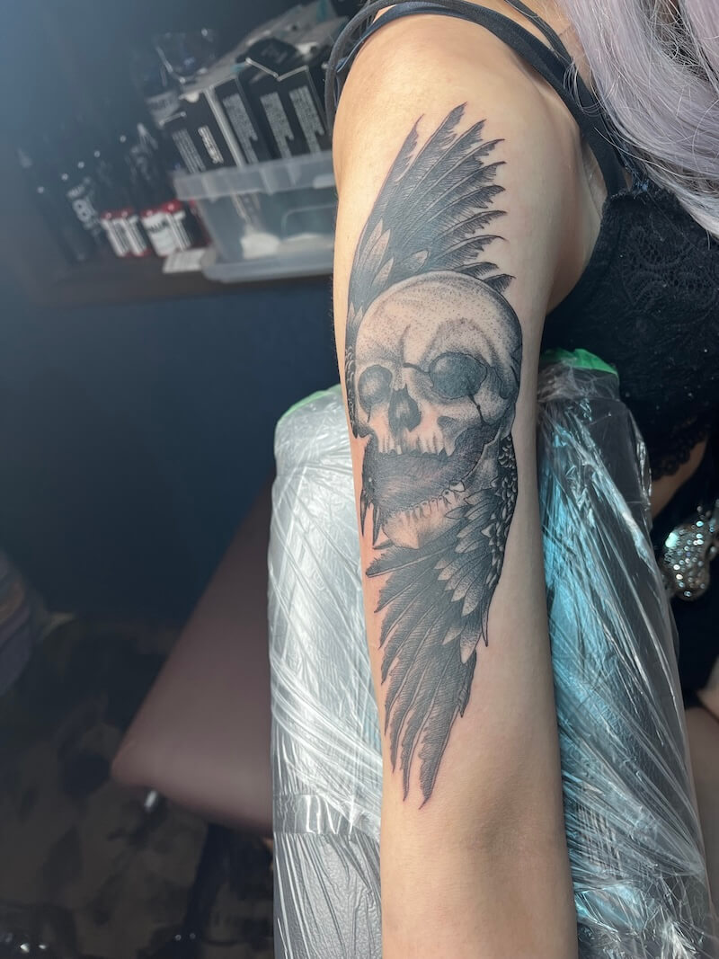 リアルの骸骨×カラスのタトゥーを彫りました。