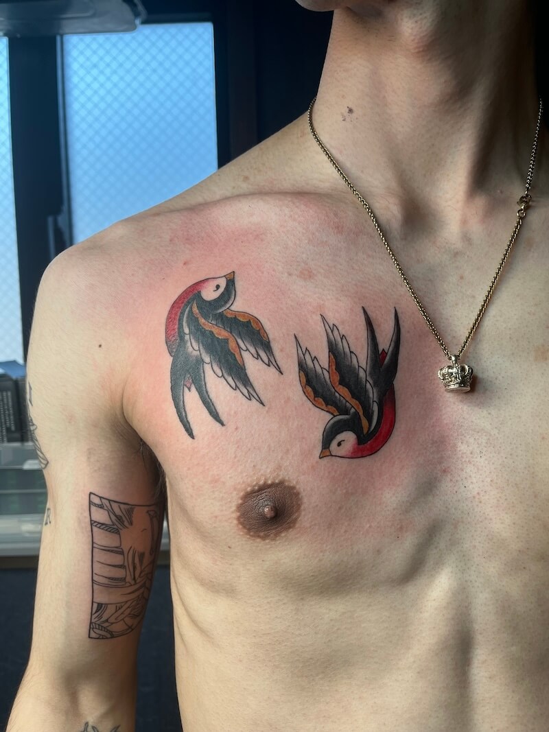 燕2匹のアメトラタトゥー